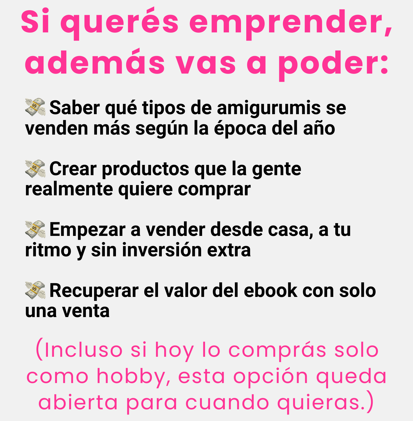 💡 Con vender solo 1 amigurumi, recuperás el valor del ebook.